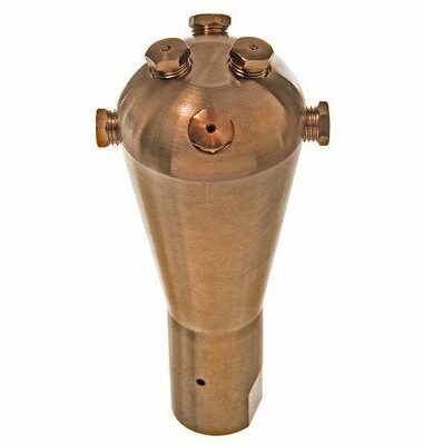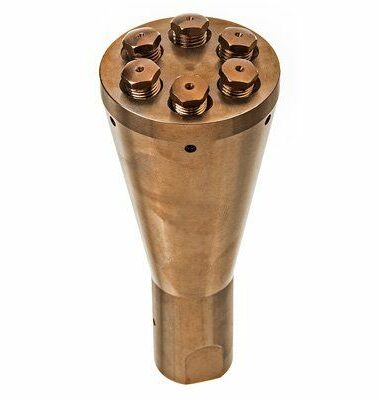 6-Jet nozzle carrier designed for use in surface cleaning and as a nozzle carrier on air rotational tools. Made of hardened stainless steel in a balanced pattern, this carrier is 2""dia and 4" long. Features a 9/16-18 inlet port available in cone or button style and accepts 3/8-24 nozzles. Made